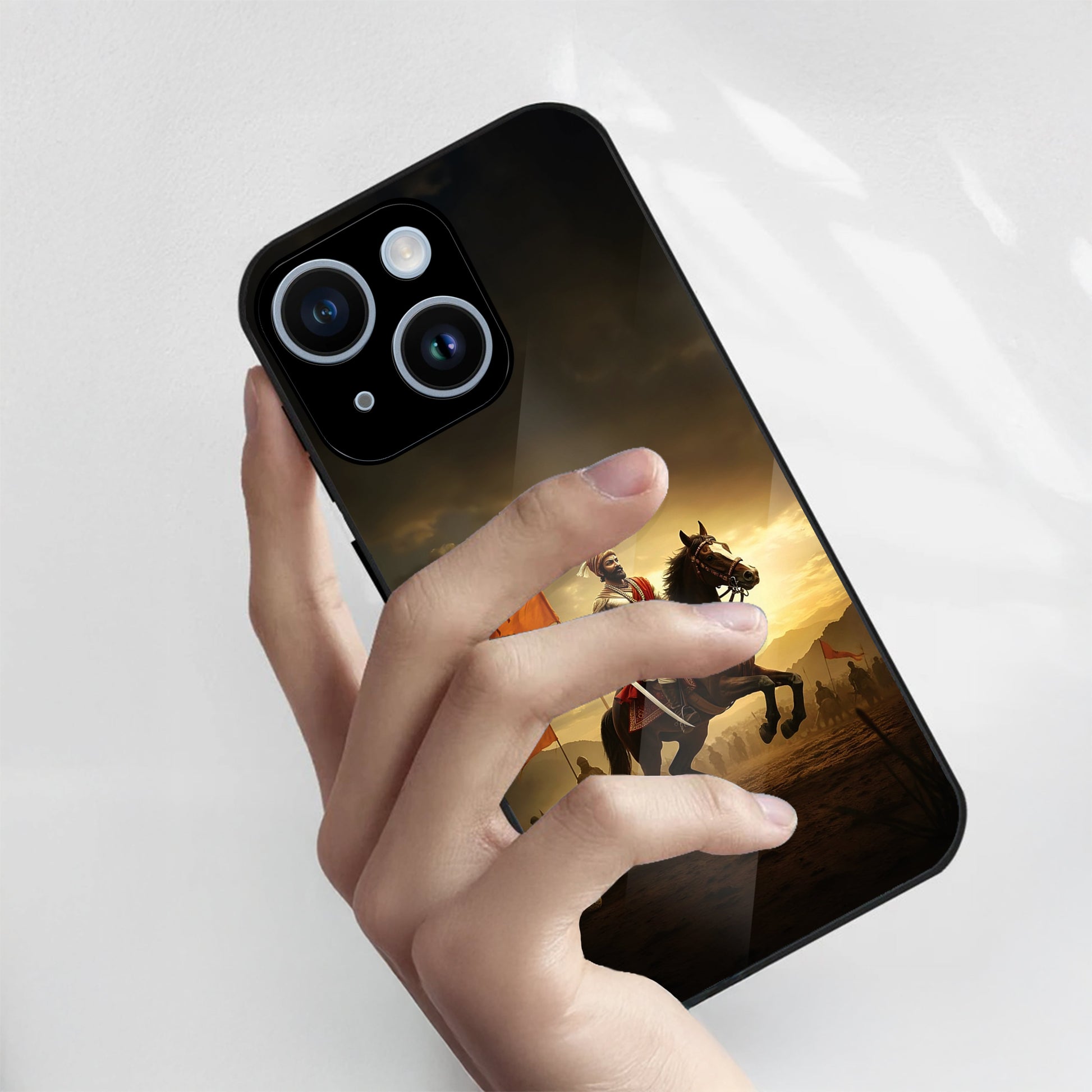 iPhone 15 Premium Acrylic Shockproof Glass Back Case (Battle Glory)