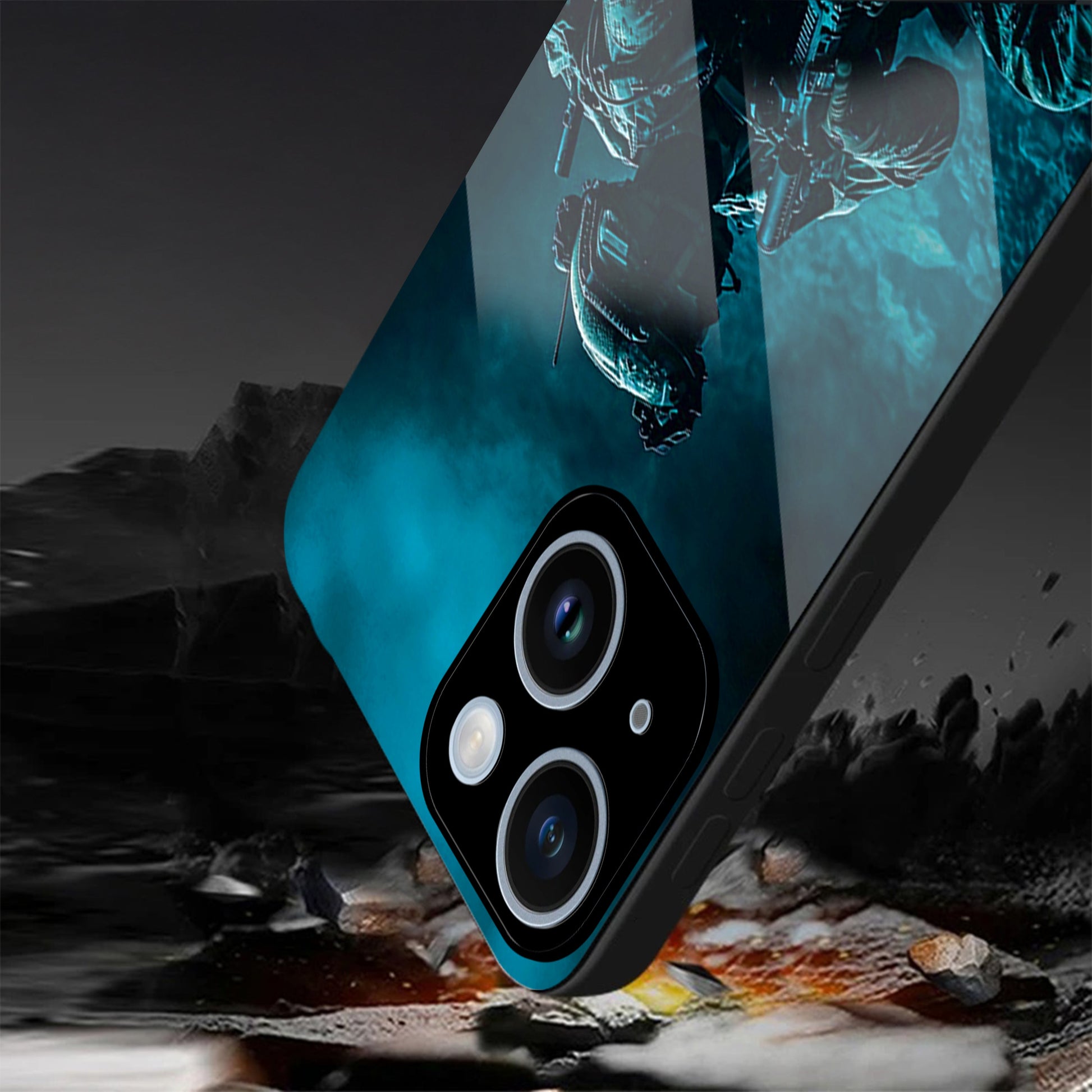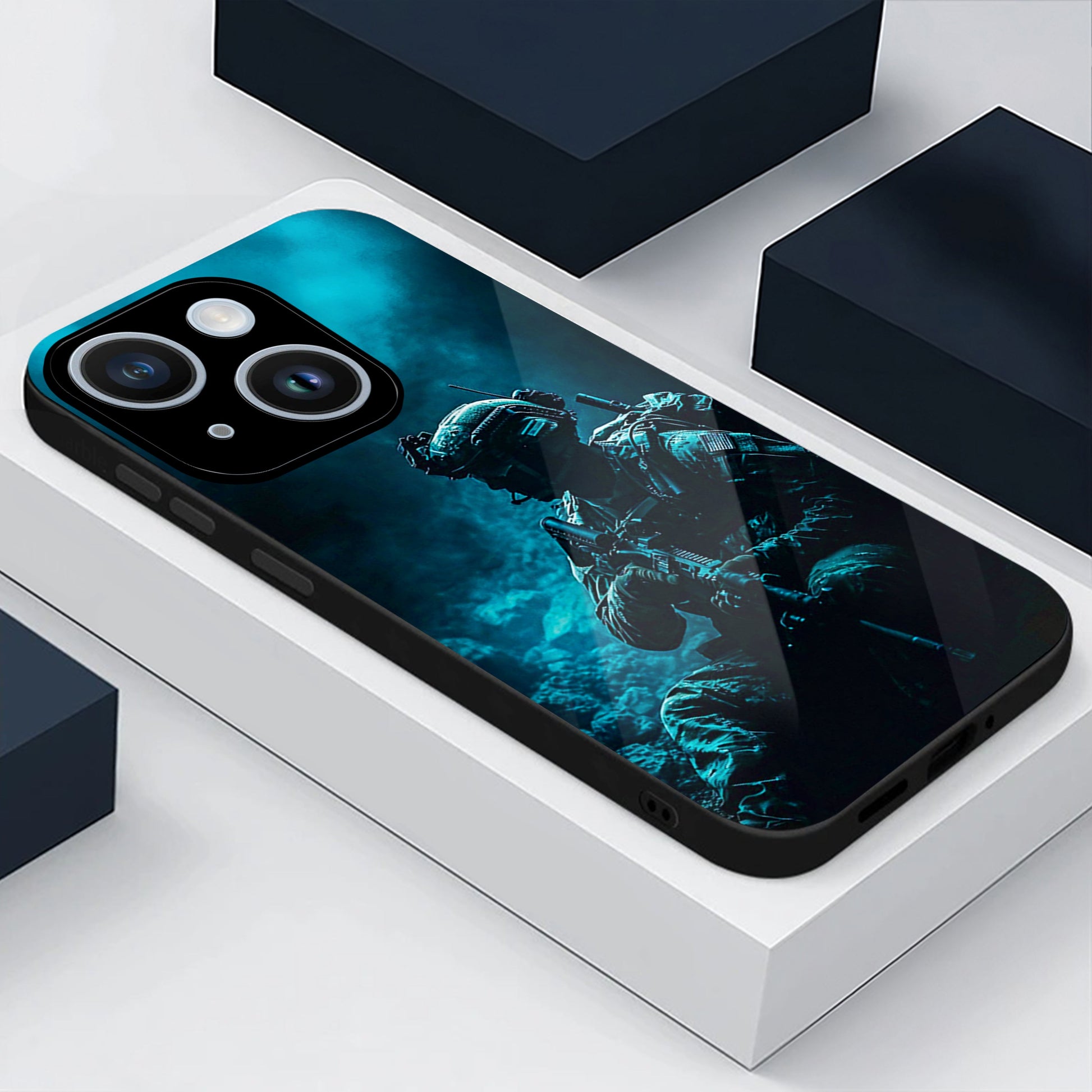 iPhone 15 Premium Acrylic Shockproof Glass Back Case (Soldier Case)