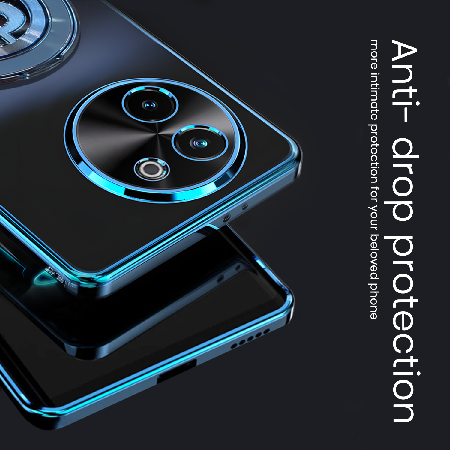 This luxury smartphone case features a sleek and transparent electroplated design with a glossy blue outline that enhances the overall aesthetics of the phone. The back showcases a unique matte pattern, offering a premium tactile feel that is both stunning and elegant. Designed with precision, the case provides an exact fit, ensuring no sliding or misalignment.