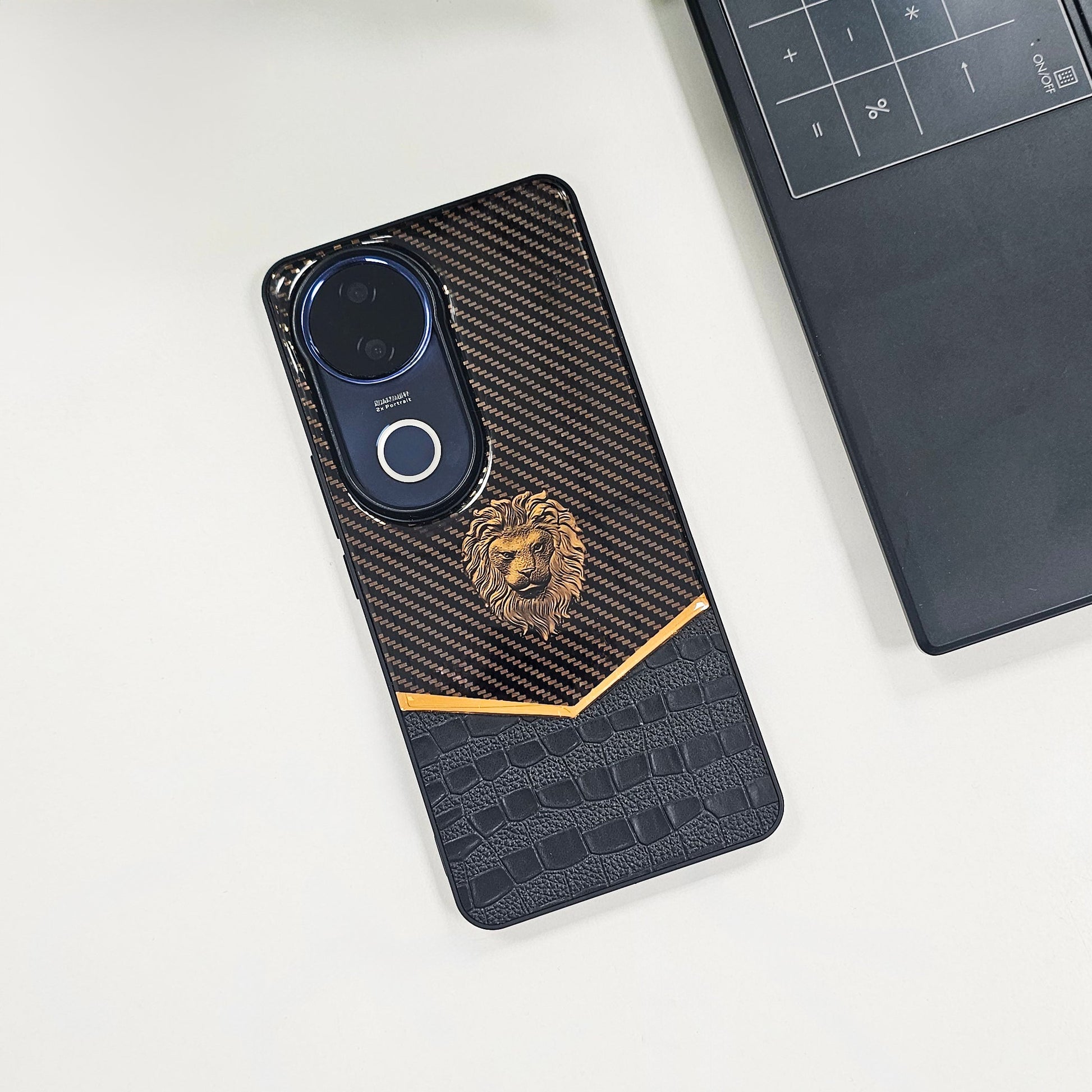 Vivo V50 5G Luxury Lion Pattern Leather And Liquid Silicone Case