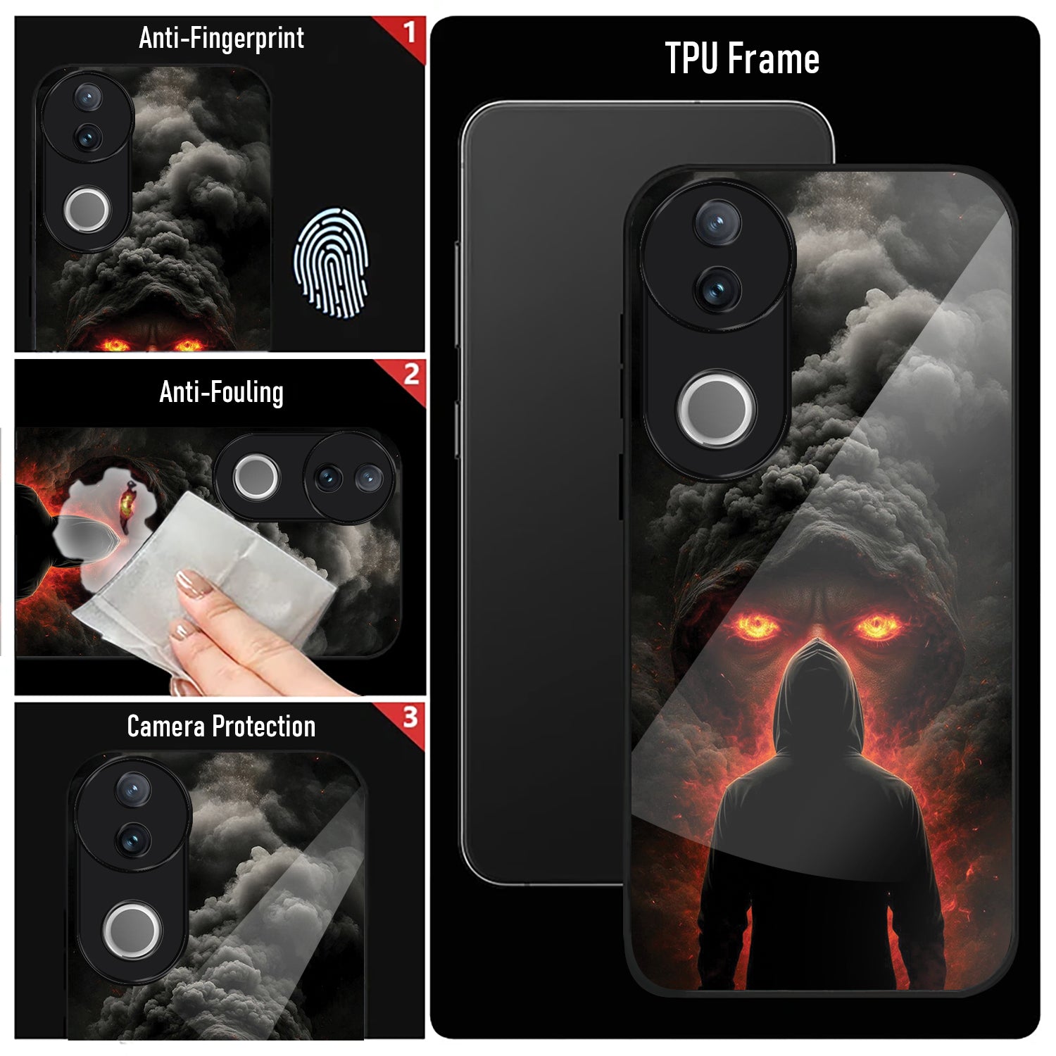 Vivo V50 5G Premium Acrylic Shockproof Glass Back Case ( Dark Flame )